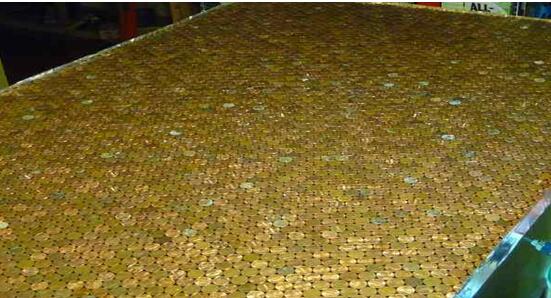 ③將硬幣平鋪在臺(tái)面上,確保它們彼此之間緊密相鄰的。如果想要擺出一些獨(dú)特圖案,那么可以考慮利用硬幣色差來(lái)排列,而不是用正反面來(lái)區(qū)別,因?yàn)閺恼w看這差別很難被發(fā)現(xiàn),用相似顏色的硬幣組合出的圖案則非常清晰。