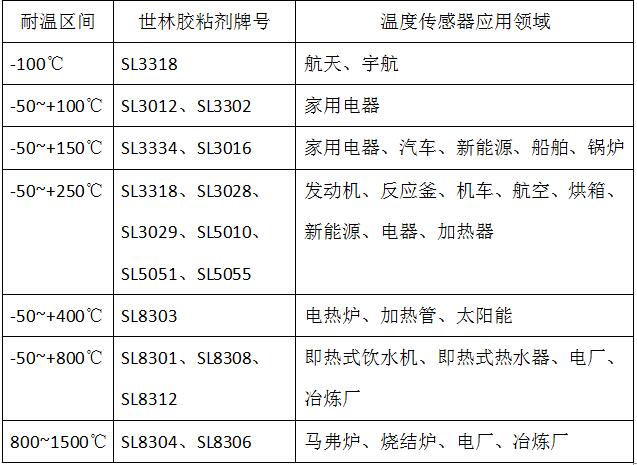 膠粘劑的性能高低對(duì)傳感器的影響較大,使用性能穩(wěn)定,耐老化好的膠粘劑為傳感器能長(zhǎng)期穩(wěn)定的工作提供了保障!所以除了上述表格可以參考之外,您應(yīng)該和我們世林的工程師溝通到具體的應(yīng)用要求,此外被粘接的具體材質(zhì)對(duì)傳感器專用膠的選擇也會(huì)有所不同。