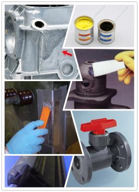 工業(yè)生產(chǎn)的過程中,難免會出現(xiàn)一個加工過程中的細微破損,如果可以修補的范圍內(nèi),修補好,將大大降低生產(chǎn)成本。SL3340修補膠用在金屬鑄件表面坑洞修補,或?qū)Ω左w裂縫修補及永久性密封;金屬框架間加固處理;金屬與金屬(非金屬)之間復(fù)合膠結(jié);非金屬PVC、ABS也能膠結(jié)而且效果比一般AB膠要好很多,特別高低溫耐候性上優(yōu)異。